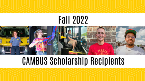 Breadcrumb Home News CAMBUS scholarship awarded to recipients for fall 2022 Thursday, July 14, 2022 Written by Odessa Neeley https://transportation.uiowa.edu/page-cambus-recognizes-five-recipients-cambus-…